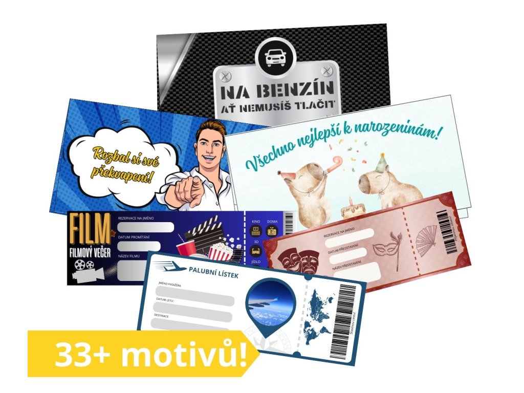✅ 33+ unikátních motivů dárkových poukazů a přání