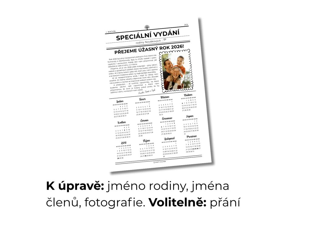 - Digitální produkt - zasíláme na email. Pokud chcete kalendář vytištěný, dokupte si prosím zvlášť tisk.