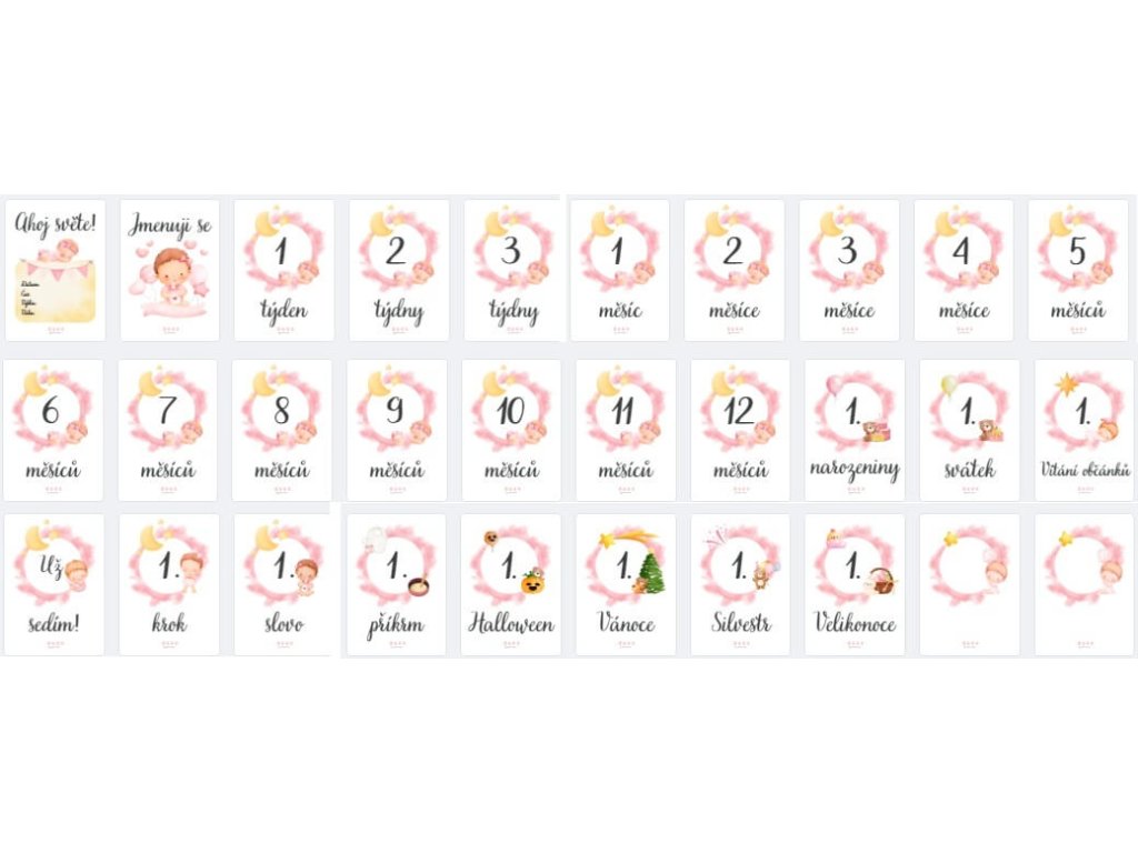 - PDF soubor s milníkovými kartičkami pro holčičku