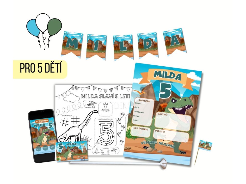 AKCE POUZE DO 15. 10. 2025 Narozeninová sada pro 5 dětí s personalizovanou girlandou, balónky, bublifuky a...