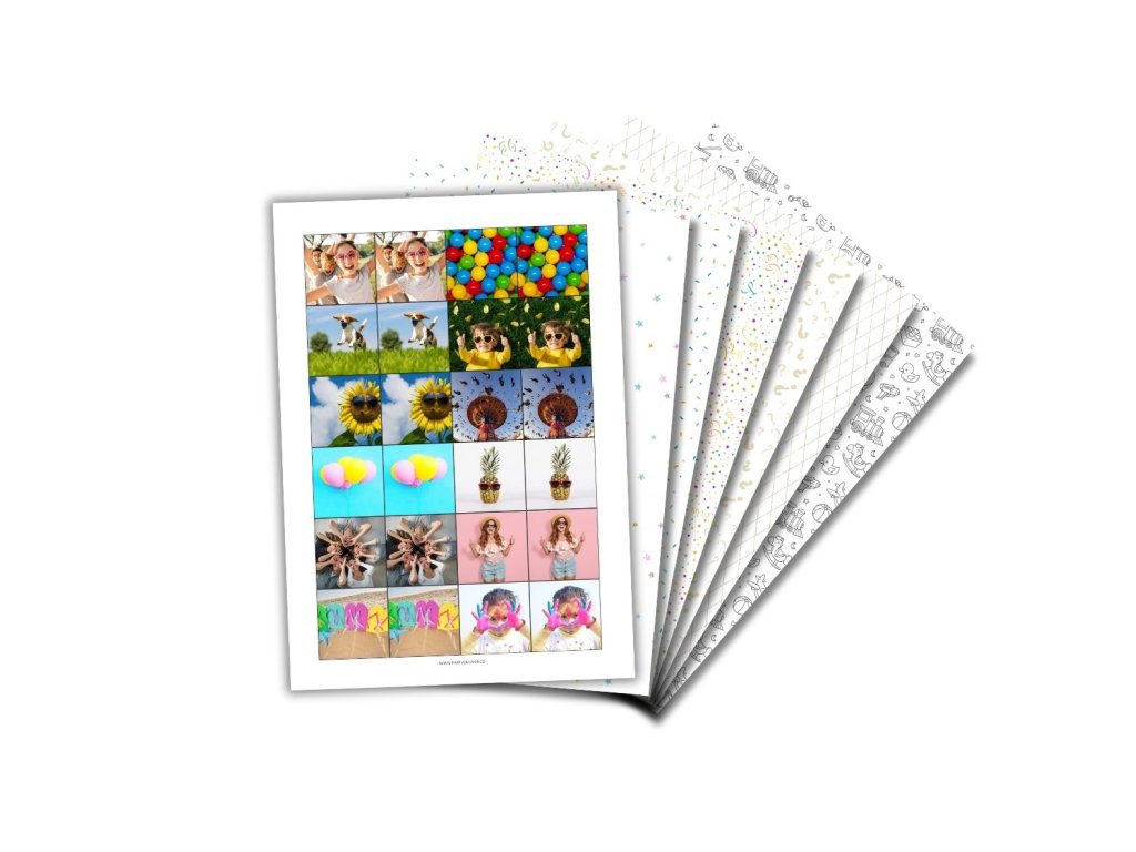 Profesionální šablona na pexeso ke stažení pro vytvoření originálního pexesa z vlastních fotek. Hotové pexeso k tisku za 8 minut bez grafických dovedností.