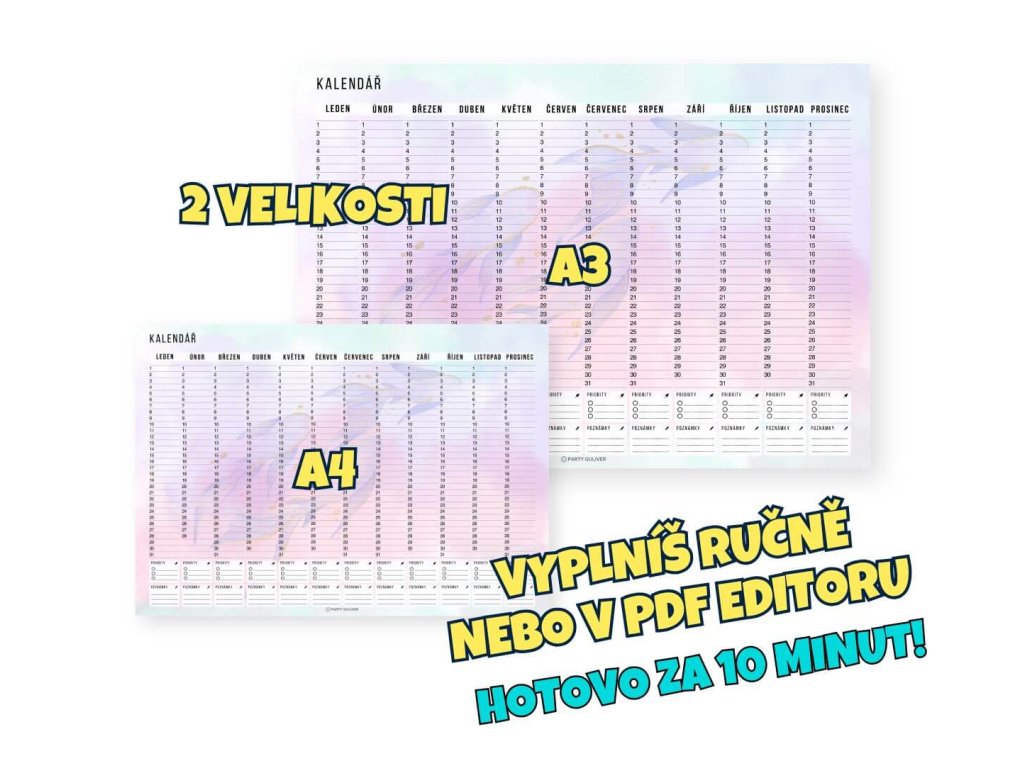 - Formáty A4 a A3 – Menší varianta do diáře, větší na stěnu nebo stůl