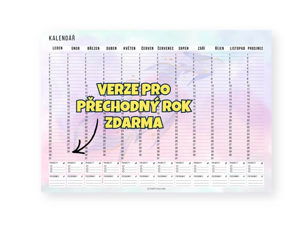 Ano. Kromě datovaného kalendáře 2026 dostáváš nedatovanou verzi použitelnou v jakémkoliv roce a variantu pro přestupný rok (s 29. únorem).