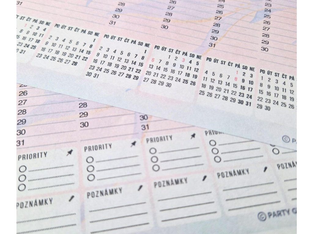 - Velikosti: A4 (do složky, diáře), A3 (na stěnu, pracovní stůl)