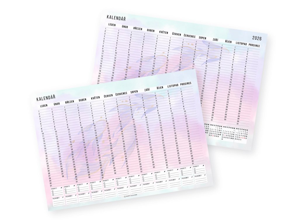 - Mají víc variant v jednom balíčku – Datovaný kalendář 2026 pro aktuální plánování, nedatovaný pro příští roky a varianta s přestupným rokem pro dlouhodobé projekty. Nemusíš každý rok kupovat nový.