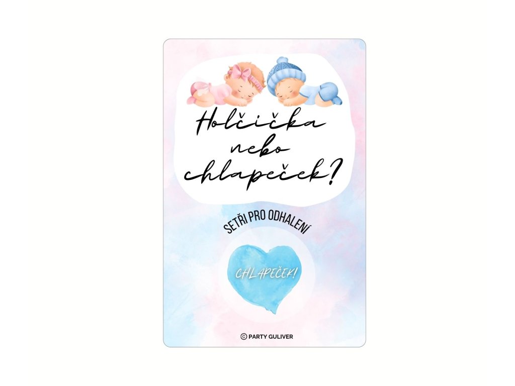Stírací los Čekáme miminko je zábavný způsob, jak rodině a přátelům oznámit, zda čekáte holčičku nebo chlapečka. Dostupné ve 2 variantách.